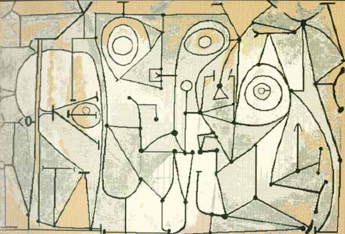 | The painting 'The Kitchen' was made in 1948. Pablo Picasso just returned from a trip to Poland and some other countries. In his house in Paris he paints two versions of 'The Kitchen'. One of these -oils on linen-, dated 9/11/48. The original canvas measures 175x250 cm. It is part of the Picasso collection of the Museum of Modern Art of New York.This is the unique collection of Picasso carpets, rugs and tapestries. A very limited edition. Each piece is numbered and comes with its own certificate. Colour and form of a number of works from the famous master Pablo Picasso have been translated into rugs of the highest quality. Woven in the traditional way, and made of pure new wool. The result is a collection of exceptional class, designs with Pablo Picasso's personal signature. Each Picasso rug gives the most artistic expression to each individual interior. Masterful elegance for exclusive interiors. This collection is realised with the direct cooperation of Spadem, whom are representing the heirs of Picasso. |